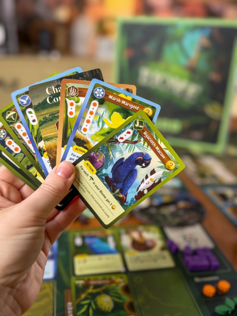 Until you reach the action phase, here each player takes a turn to activate one card in their Biome. That mix of shared pacing with individual decision moments? It’s a beautiful balance.